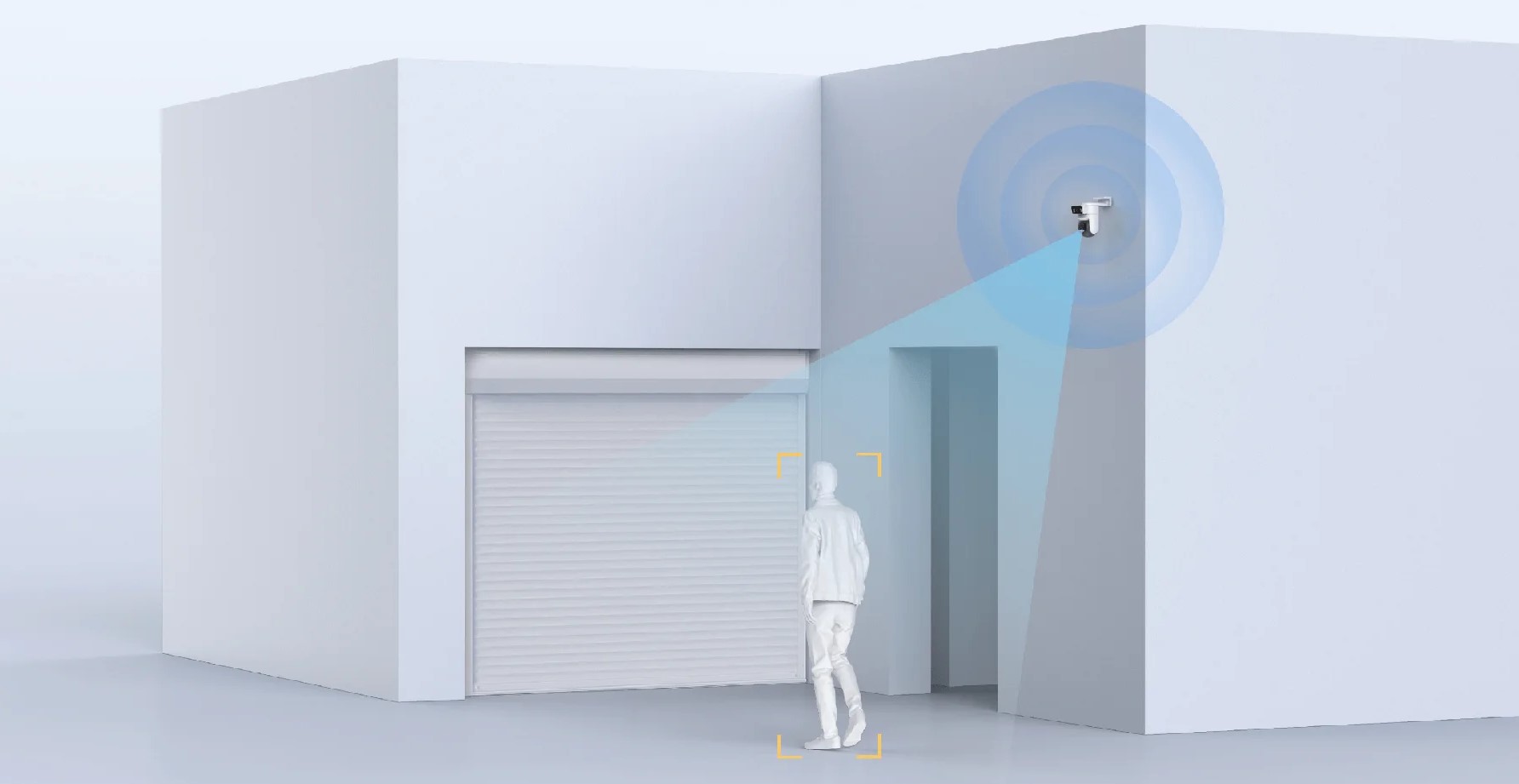 Можно настроить устройство так, что при появлении в контролируемой зоне камера активирует световой и звуковой сигнал тревоги одновременно с уведомлением в приложении и передачей видео.