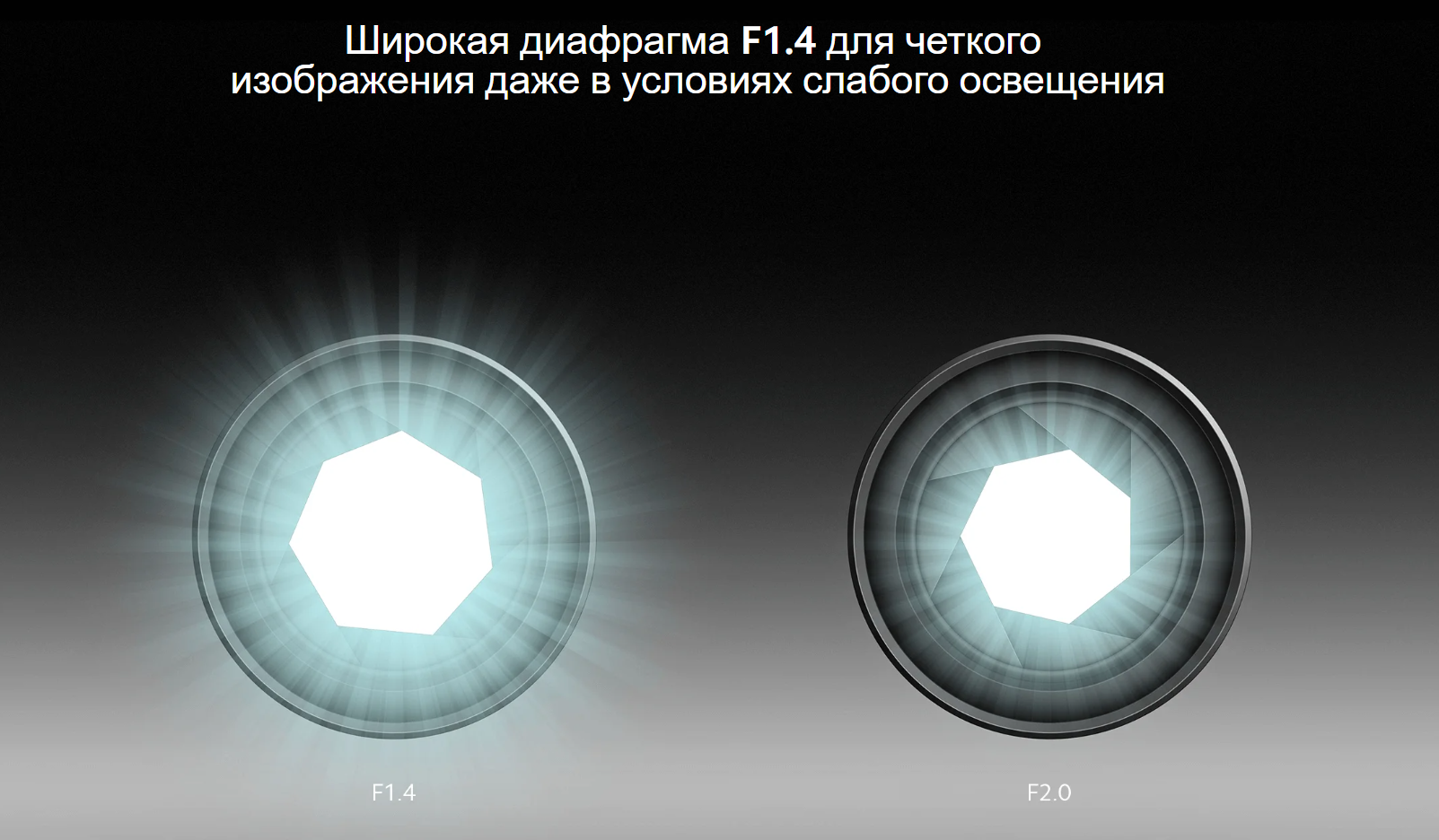 Светосильный объектив с диафрагмой F1.4 позволяет значительно увеличить количество света, поступаемого в объектив, и получать четкие изображения даже в условиях слабого освещения.