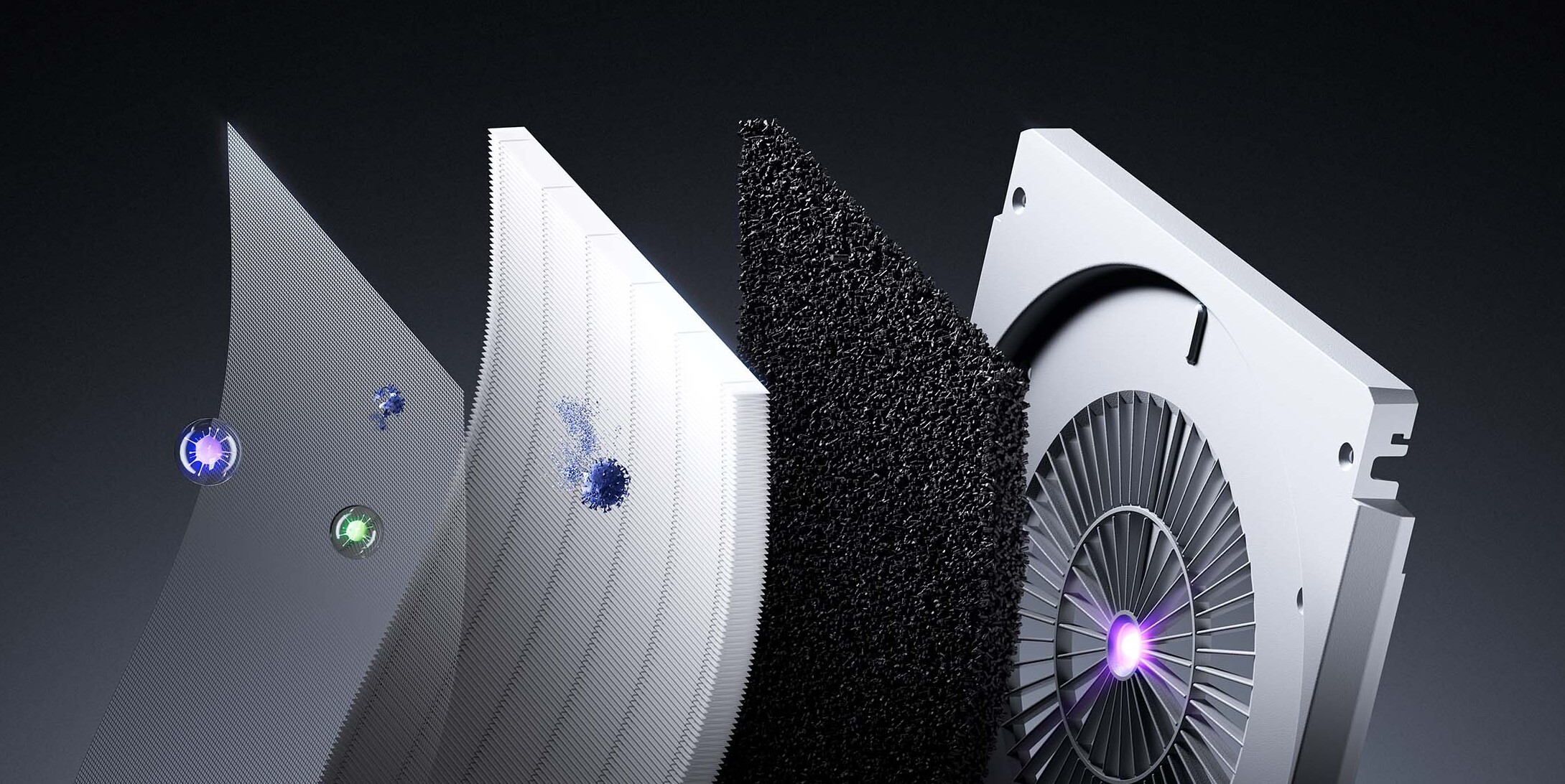 В устройстве используется четырехступенчатая комплексная очистка воздуха. Очиститель оснащен HEPA-фильтром и угольным фильтром, благодаря чему помогает бороться с пылью, мелкими частицами и нежелательными примесями в воздухе. Дополнительно предусмотрены ионизация и двойное УФ-облучение, что делает систему очистки еще более многоуровневой и современной.