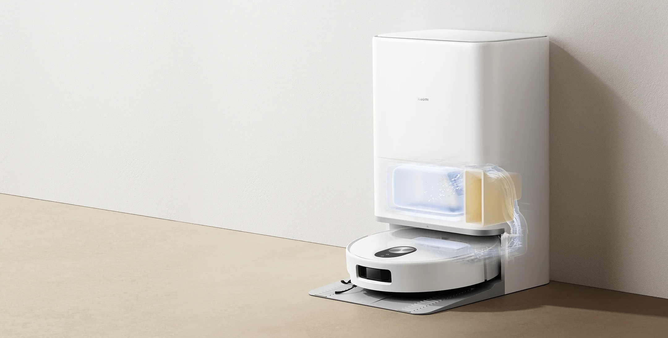 Главная особенность модели — усовершенствованная база самоочистки, которая автоматически опорожняет контейнер, моет и сушит моп горячей водой до 80 °C. Это полностью избавляет пользователя от необходимости вручную чистить пылесборник и тряпку, сохраняя гигиеничность и свежесть после каждого цикла.